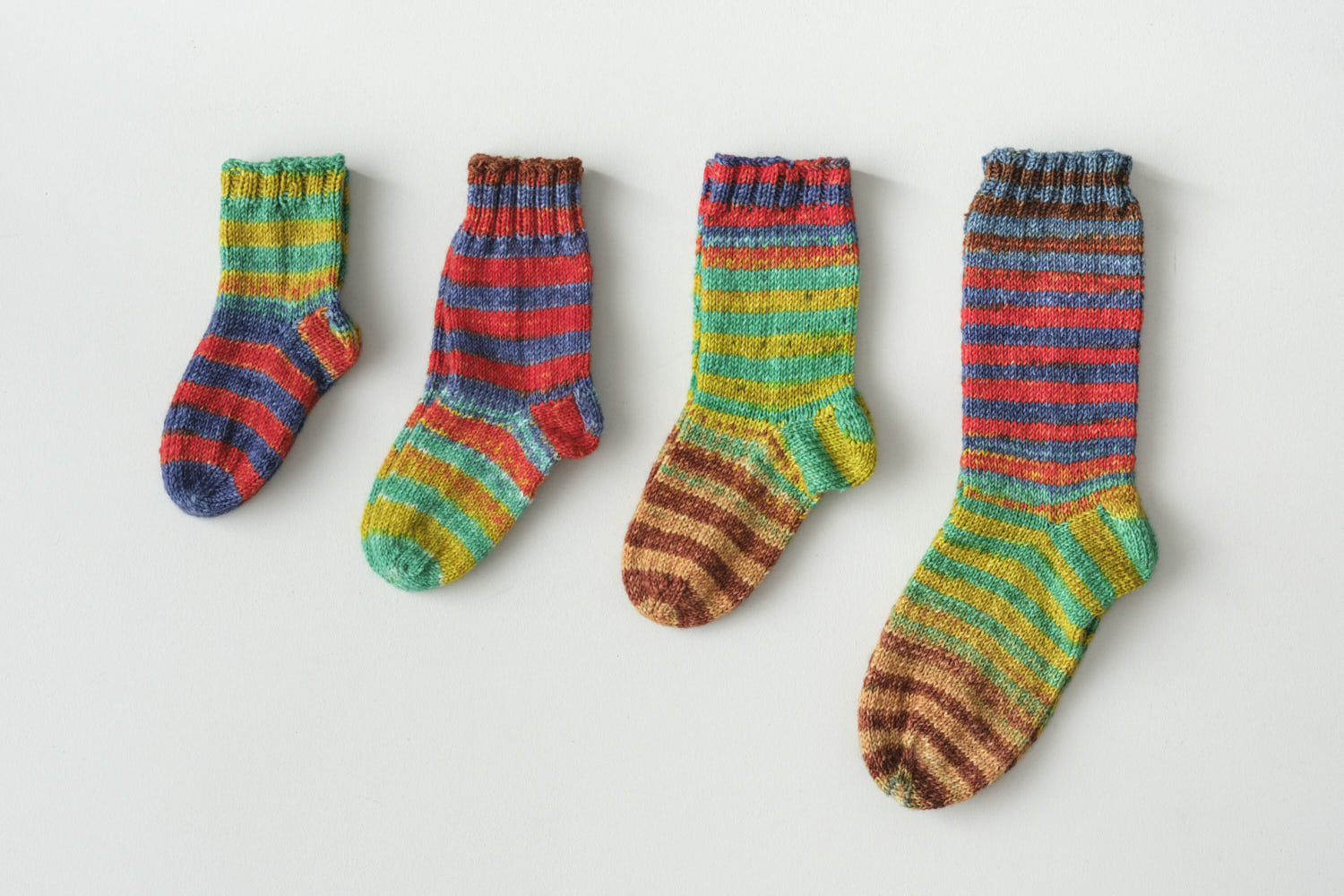Self striping fun for the whole family! Urth Kits for big and small feet.