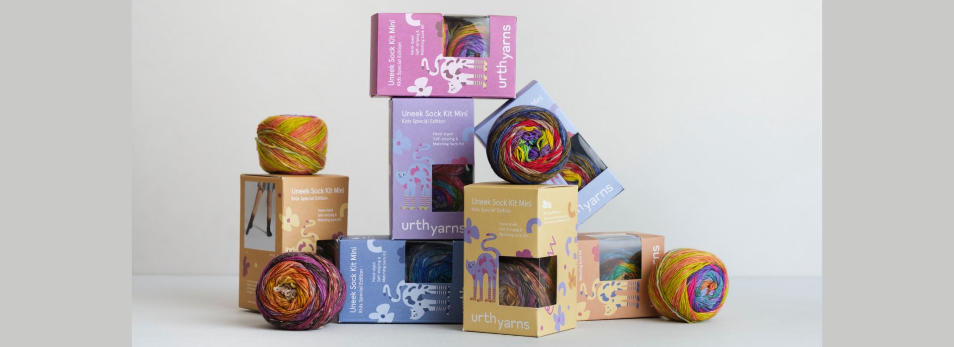 We're excited to announce that Urth Yarns have joined the Morris and Sons family! Renowned for their natural hand-dyed yarns, Urth Yarns brings a pop of colour and creativity to every project. Their self-striping sock kits are no exception, providing vibrant, fun colourways that delight both big and little feet.