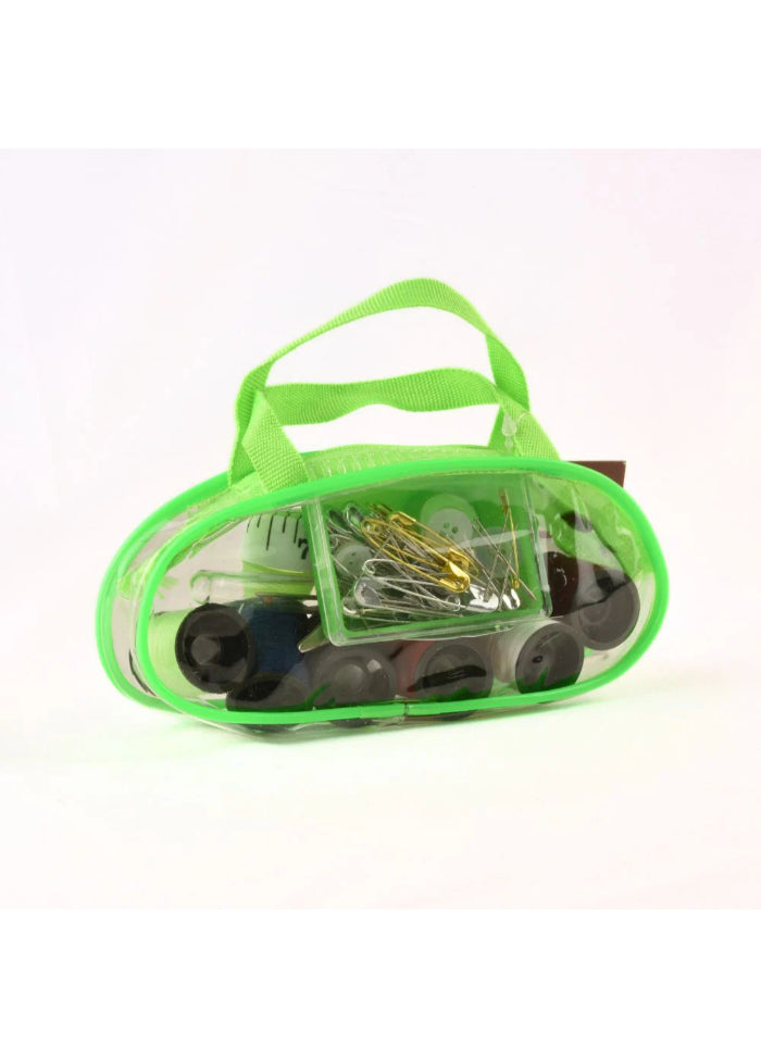 Perfect for quick fixes on the go, this compact travel sewing kit keeps all the essentials at your fingertips. It includes multiple thread colours, a threader, scissors, thimble, button, and paper tape measure — everything you need for simple repairs wherever you are.
