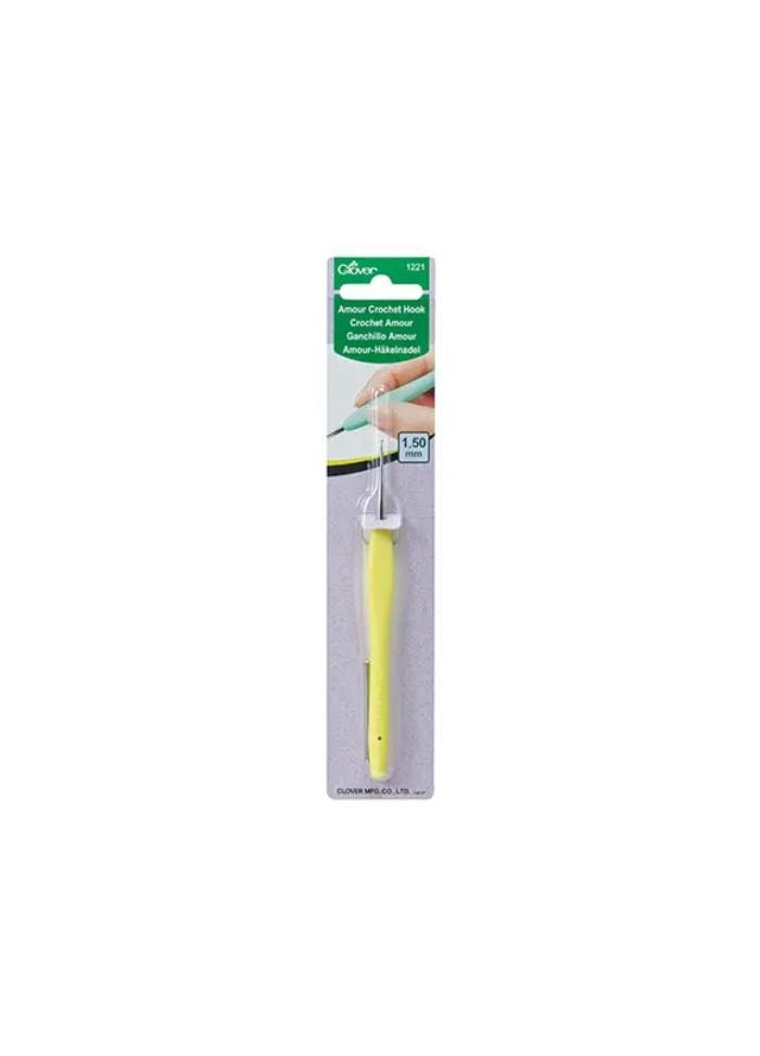The Clover Amour crochet hook combines a smooth aluminium hook with a soft, ergonomic handle for comfort and control. Available in a range of sizes, it allows stitches to glide easily, making it a favourite for both beginners and experienced crocheters.