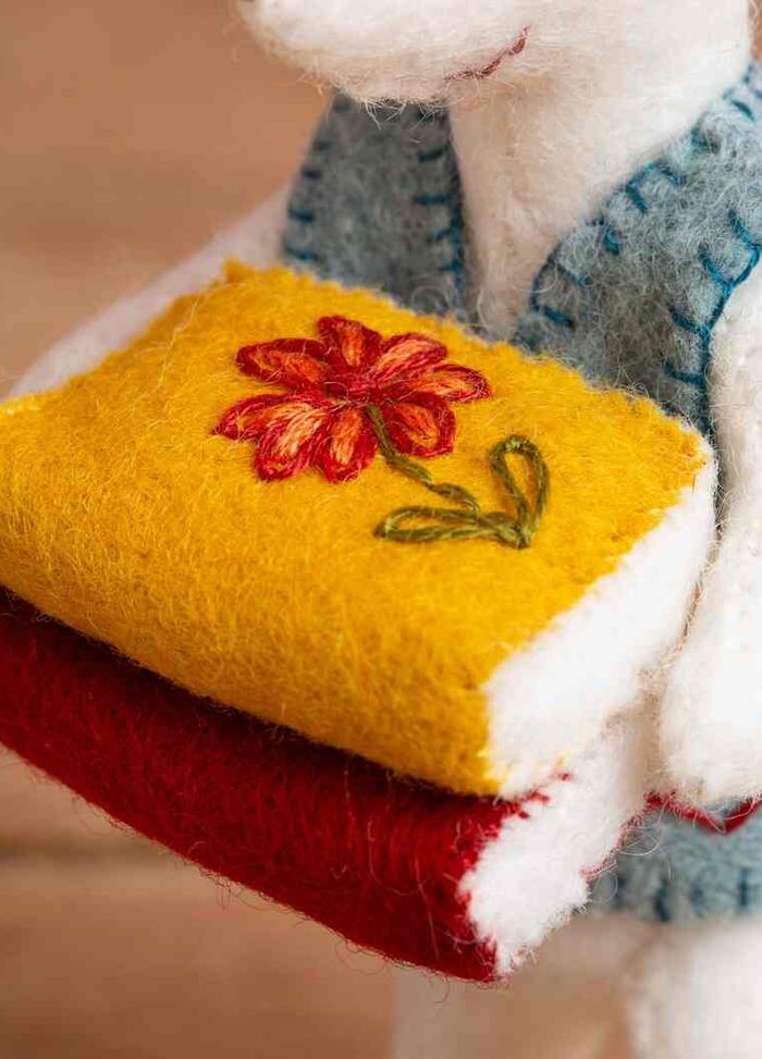 Meet the Little Mouse The Librarian Felt Craft Mini Kit by Corinne Lapierre -perfect for a cosy crafting session. This all‑in‑one kit includes soft wool‑mix felt in vintage tones, 12 coordinated DMC threads, an embroidery needle, ribbon, toy‑filling and full‑scale templates with a stitch guide - just add scissors. The finished figure stands approximately 13.5 cm and features a sweet mouse carrying a stack of books, ideal for display, gifting or weaving into a creative décor story. Made in Britain with thoughtful packaging, it’s suitable for makers of all levels.