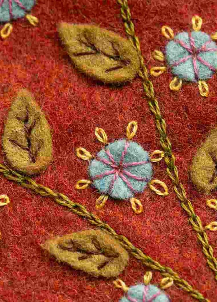 3 pieces of wool mix felt, full scale template, illustrated instructions and a stitch guide, 12 DMC threads, embroidery needle, & toy filling
