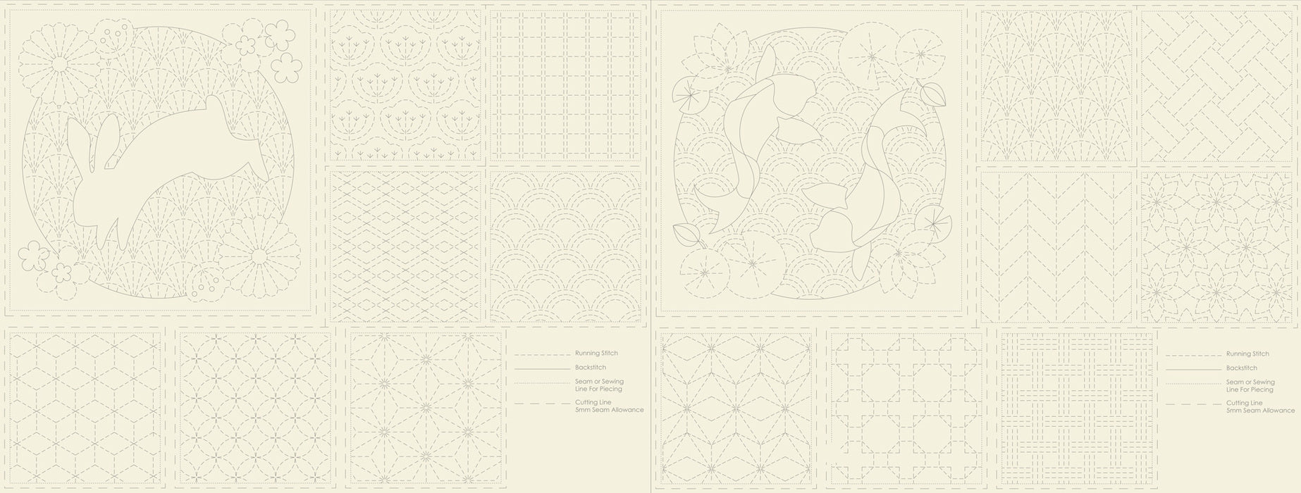 The Devonstone Sashiko Panel in Natural is a pre‑printed linen/cotton fabric panel measuring 137 × 50 cm, featuring multiple blocks to hand‑stitch traditional sashiko motifs. Perfect for quilting, décor or textile art projects, the printed guide lines make it easy to create meditative sashiko embroidery.