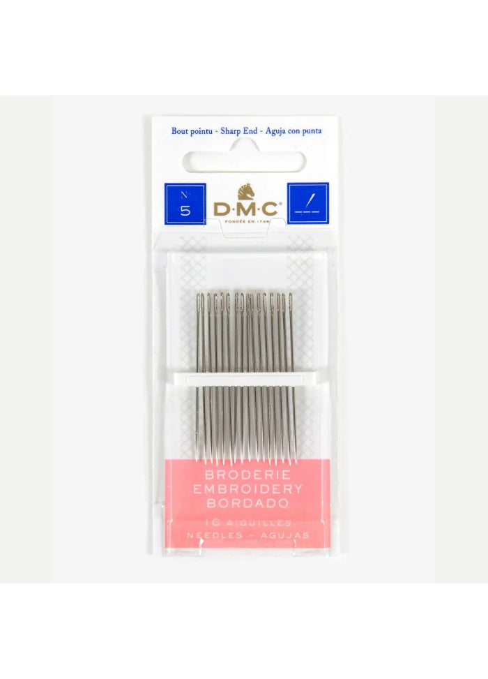 These DMC embroidery needles are designed for surface embroidery and detailed stitching. Made from premium-grade, nickel-plated steel, they feature a sharp point to pierce embroidery fabrics easily and a medium-to-long eye to accommodate multiple strands of thread. Packs include mixed or single sizes such as 3-9, 5 or 5-10, so you can choose the gauge that matches your thread count and fabric weave.