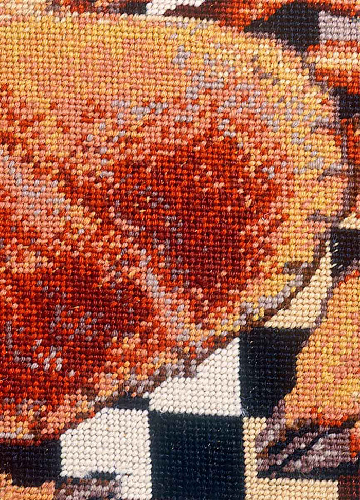 Kaffe Fassett's Crab design features a lifelike crab with beautiful colour shading, set on a fishmonger's slab. The chequerboard background adds a striking contrast, making this tapestry kit a standout project for stitchers. The 10-count canvas and pure new wool threads ensure a satisfying stitching experience, resulting in a bold and decorative cushion front.