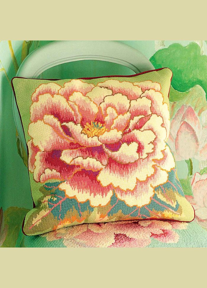 Ehrman Floating Peony Cushion sets balanced colour against a soft neutral ground, with a fine border for definition. Clear colour blocks make for a relaxed, confident stitch, ideal for quiet evenings; finish as a standout cushion or frame for the wall. Kit includes printed cotton canvas, Ehrman wools, needle and easy‑to‑follow instructions.