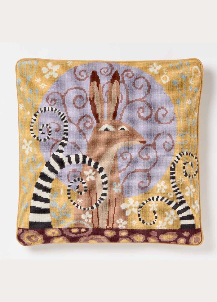 Ehrman Moon Hare Cushion sets earthy neutrals against a pale ground, with crisp borders for lift. Clear colour blocks make for a relaxed, confident stitch, it’s ideal for relaxed evening sewing and makes a fresh, modern cushion when finished. Kit includes printed cotton canvas, Ehrman wools, needle and easy‑to‑follow instructions.