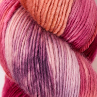 Spun for softness and dyed by hand in small batches in Tuggerah (NSW), this non-superwash yarn offers a gentle, lofty feel with a touch of rustic charm. Its single-spun construction gives finished pieces a natural halo and relaxed structure, ideal for openwork and flowy shapes.