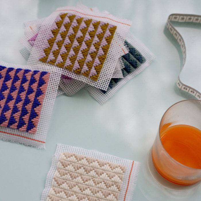 Discover a refined embroidery project with the Uunartoq Embroidery Pencil Case Kit by Kit Couture. Stitch the striking triangular gobelin-stitch pattern on stramaj fabric using 100 % wool thread then finish the piece into a lined zipper pencil case (22 × 7.5 cm). Everything you need is included - wool threads, fabric, zipper-lined case, needle and instructions. Choose from a range of rich colourways and create a useful, stylish accessory perfect for craft-lovers or as a handmade gift.