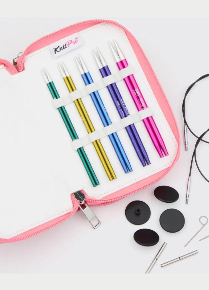 New to interchangeable needles? The KnitPro Zing Starter Set is the perfect place to begin. It includes essential needle sizes and cables, all crafted in lightweight, colour-codedaluminium with polished silver tips. Smooth, secure connections and flexible cables make for comfortable knitting, whether you're tackling flat or circular projects. Compact, easy to use, and built to last—this set gives beginners a strong start with professional-quality tools.