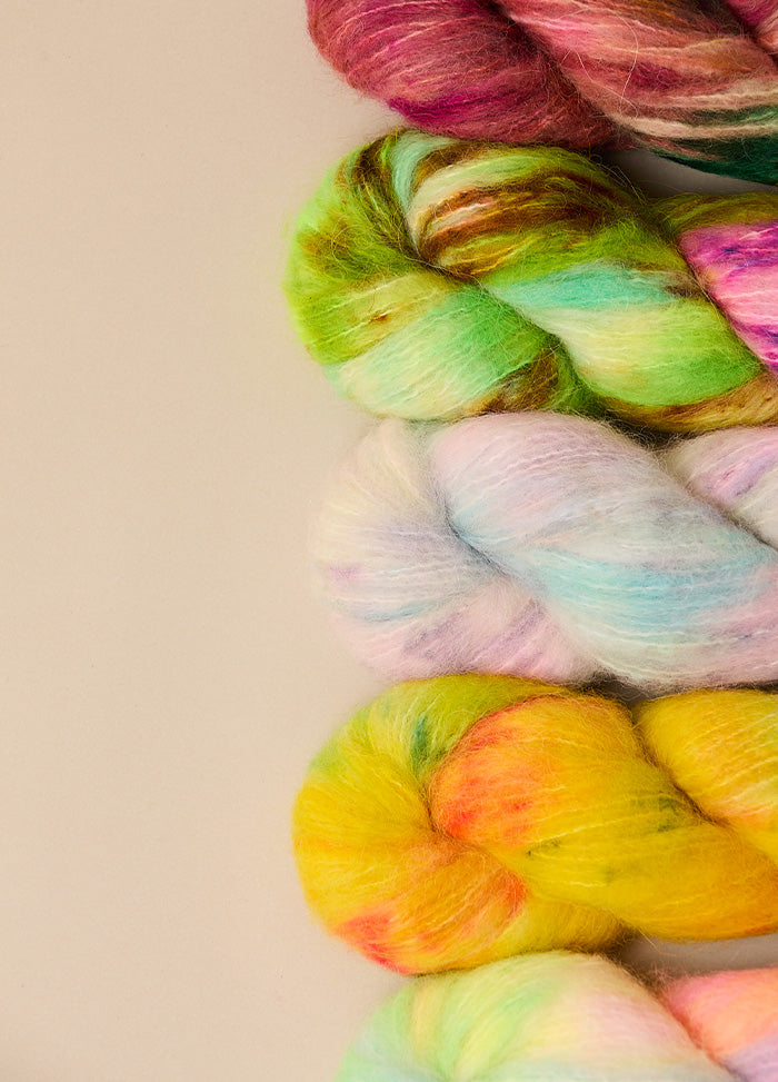 Hand-dyed in Qing Fibre’s stunning colourways, Melted Baby Suri transforms simple stitches into something truly special.