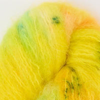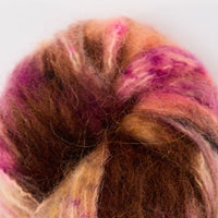 Qing Fibre Melted Baby Suri is a luxurious brushed yarn, blending Baby Suri Alpaca, fine Merino wool, and Silk. The result is a cloud-soft strand with a gentle halo and beautiful drape, perfect for adding texture and depth to your knitting.