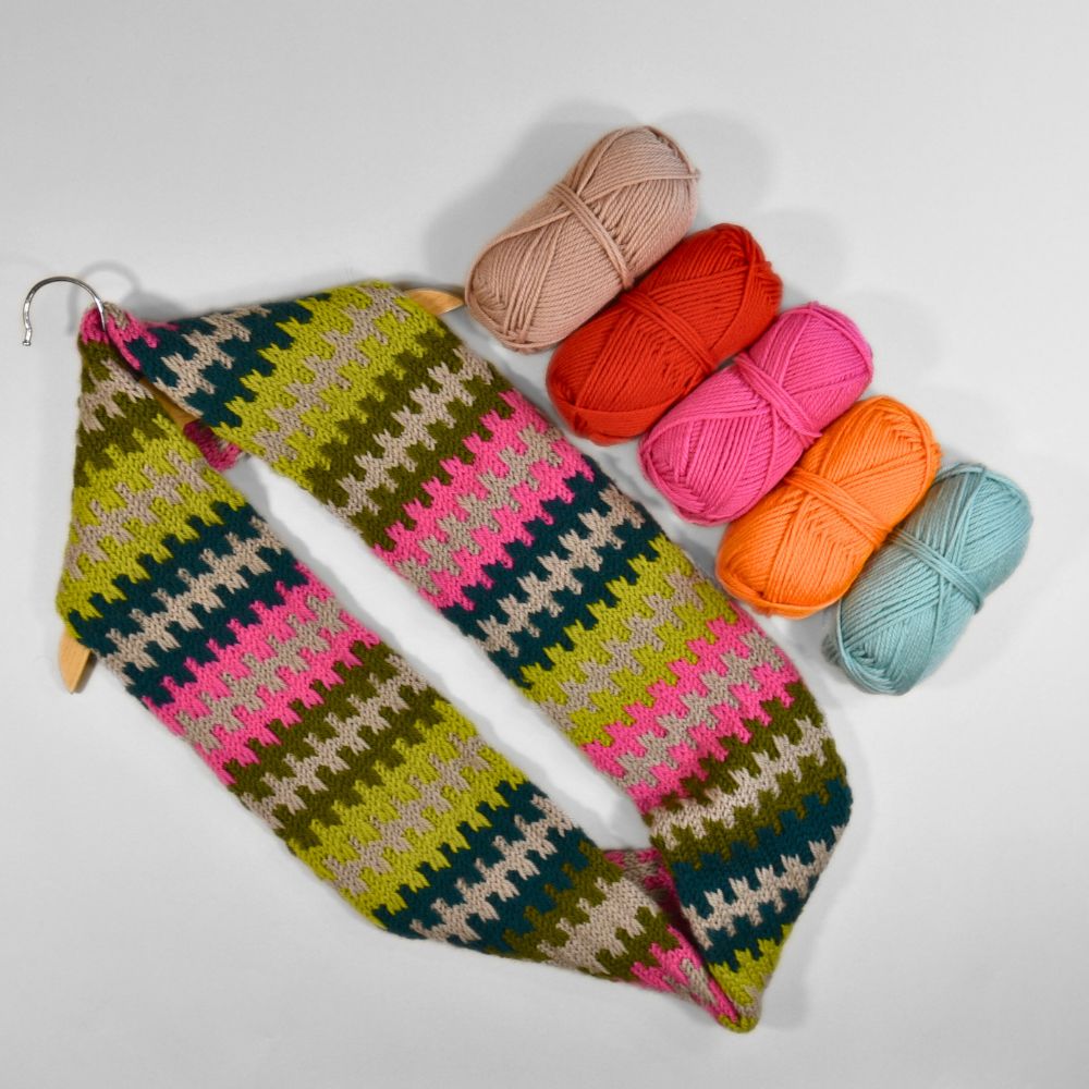 Discover the Sweet Tooth Cowl, a vibrant and eye-catching infinity scarf designed exclusively for Morris & Sons by local Sydney knitwear designer Jacqui Verbeek.