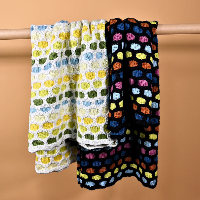 Knit the Westknits Painting Honeycombs Blanket in super soft Morris Empire 8 Ply with this ready-to-go knitting kit! The small size is perfect for babies or as a colourful lap blanket. The slip stitch technique is easy to follow, making it a perfect adventurous beginner project.
