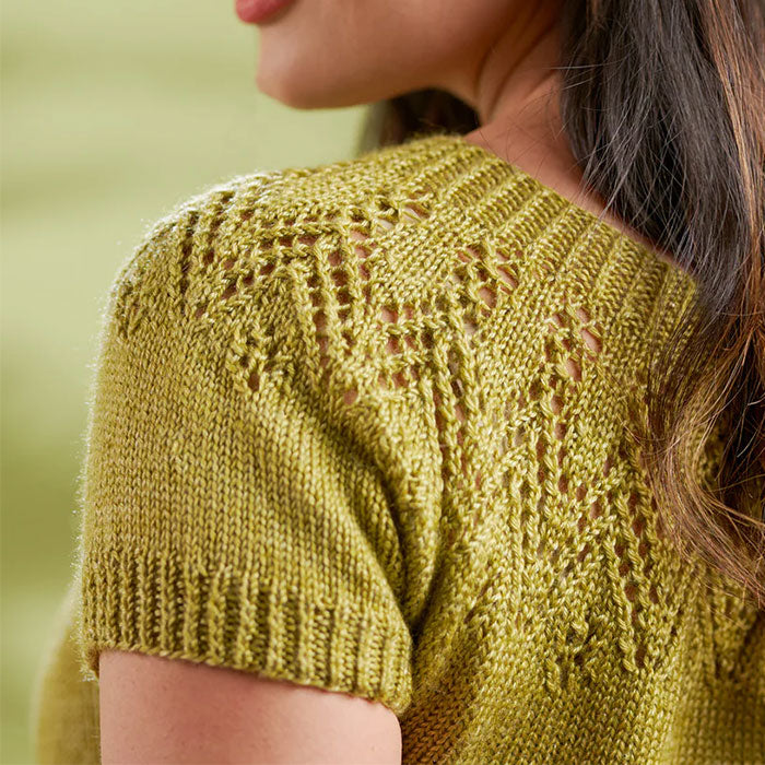 The Lyra Top by Sarah Hatton pairs delicately lacy yoke detail with a classic pullover silhouette. Designed top-down with feather lace texture and ribbed edges, Lyra is a versatile wardrobe piece knit in West Yorkshire Spinners Elements DK. Available in a broad range of adult sizes, it's a lovely project for knitters ready to explore lace shaping and effortless style.